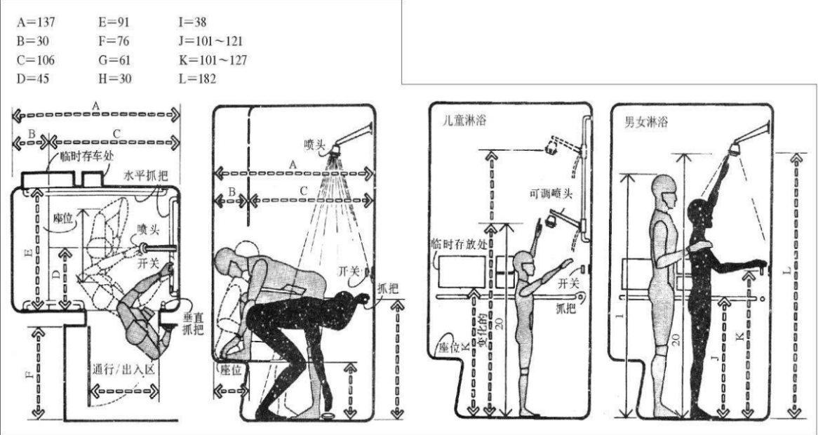 人的自身尺寸就成为度量空间尺寸的标尺,分静态和动态的尺度。