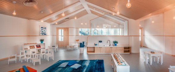 先来一波意大利设计师马代奥设计的「北京亦庄蒙特梭利幼儿园」的空间色彩......