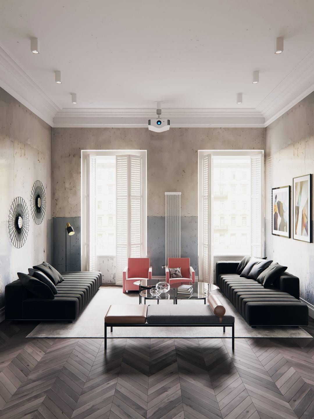 整片大型地毯,兼顾两侧,避免噪音也更具整体感。