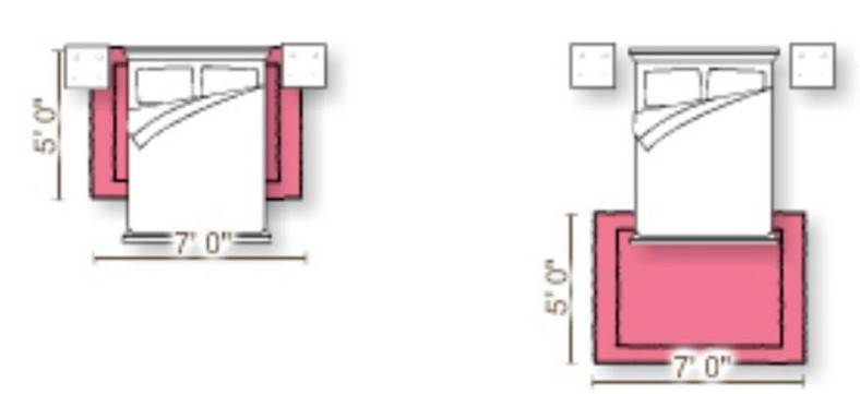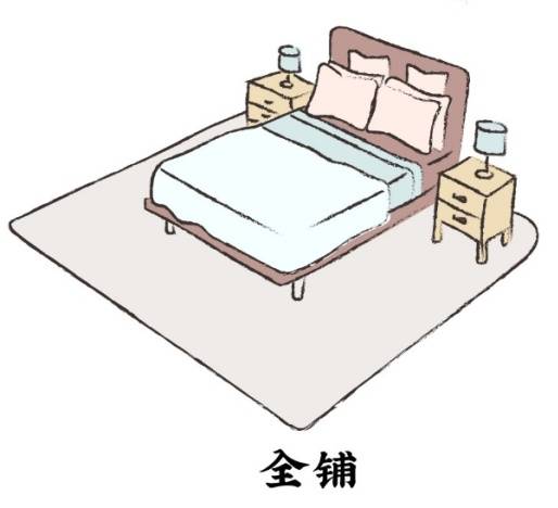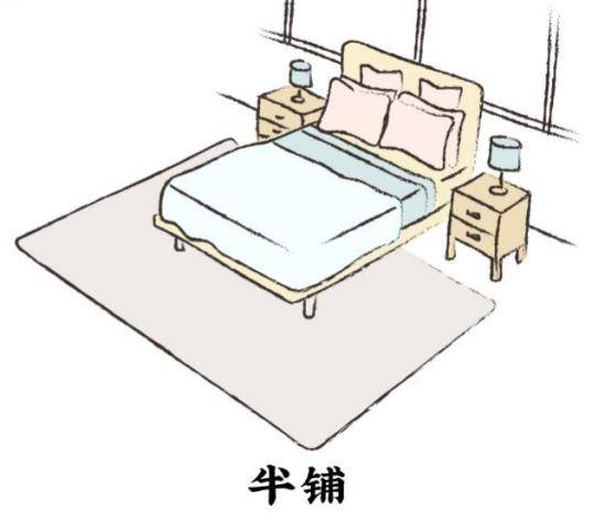 根据床的尺寸,保证左右两侧30-50cm 的触地面积,床尾地毯长度保证不超过床长的 1/3,即为地毯尺寸。