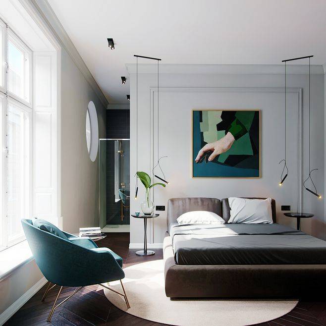 卧室中铺设地毯除了营造氛围以外,主要是不让双脚从温暖的被窝中出来后直接接触冰冷的地面,选用脚感舒适的羊毛地毯或混纺地毯更适宜。