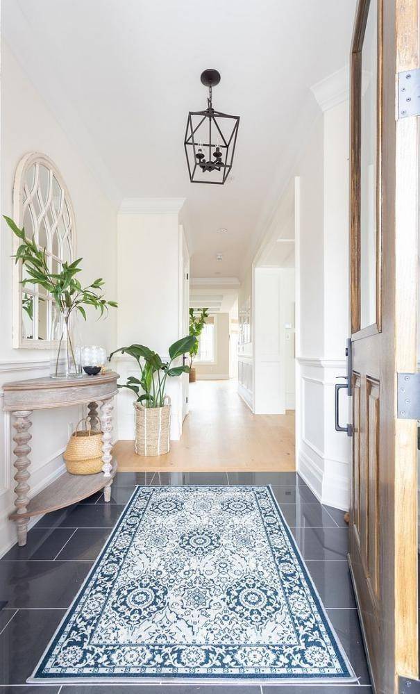 玄关踩踏频繁,容易脏,选择方便清洗又通风透气的竹纤维或者亚麻地毯更合适,价格也相对便宜一些。