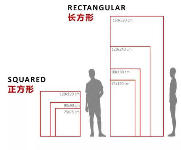 常见尺寸有2700×2700mm(分成9块900×900mm大砖)、2400×2400mm(分成9块800×800mm大砖)、2400×3000mm(分成20块600×600mm大砖),一般450-650元左右一平。