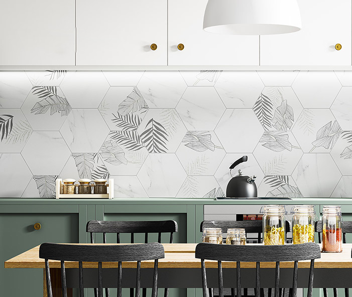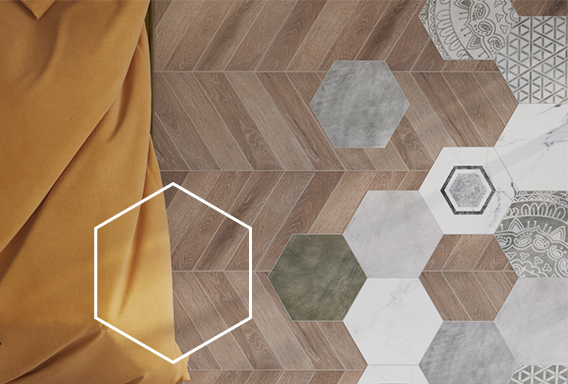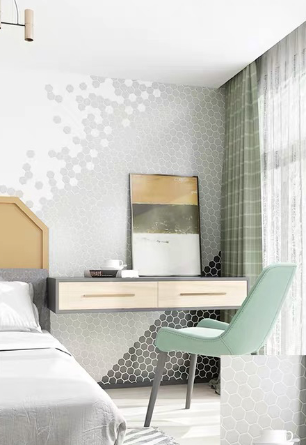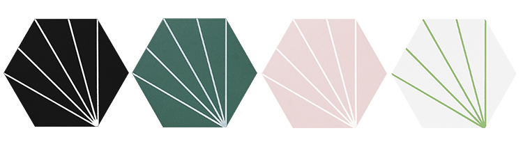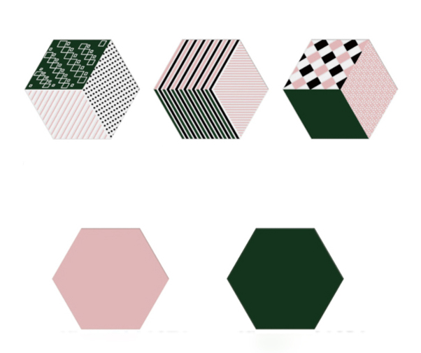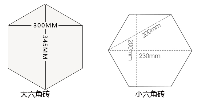 六角砖:又名六边形瓷砖,铺贴出来的效果很强烈,适合有个性需求的消费群体。常见尺寸有两种:大六角砖300×345mm、小六角砖200×230mm