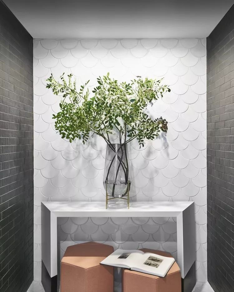 六角砖铺贴难度大,成本高。地面常贴在玄关与木地板、瓷砖相交接的地方,墙面常用于整面墙或者局部造型。