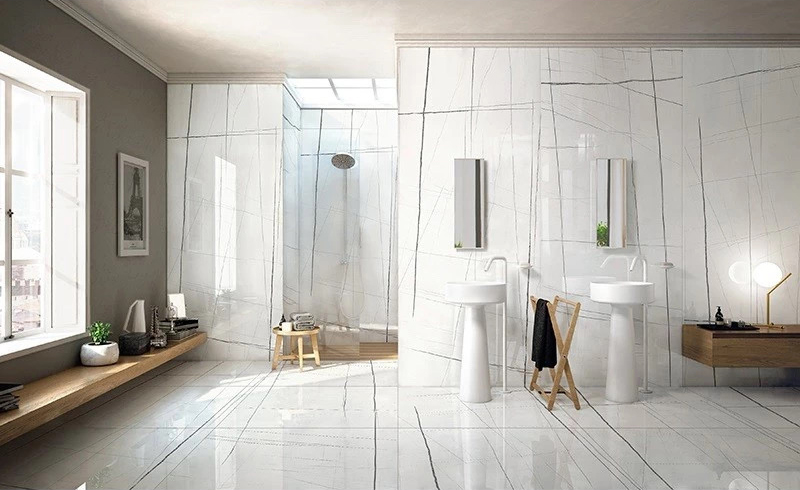 大板砖是一种流行趋势。陶瓷大板在规格上变得更大,可以由里及外随心所欲地模仿天然石材,将天然石材变化万端的纹理、质感和花色更加原汁原味、淋漓尽致地展现出来。而不是将其“浓缩”在传统规格的大理石瓷砖当中,以体现天然石材纹理的完整性。