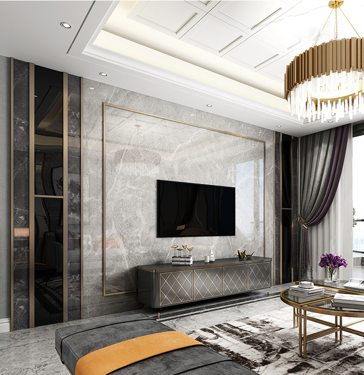 大板砖在铺贴的时候留缝少,不容易留下脏污,可自由随意切割,可承载的花色图案多,富有设计感和个性化,让装饰起来更高端。