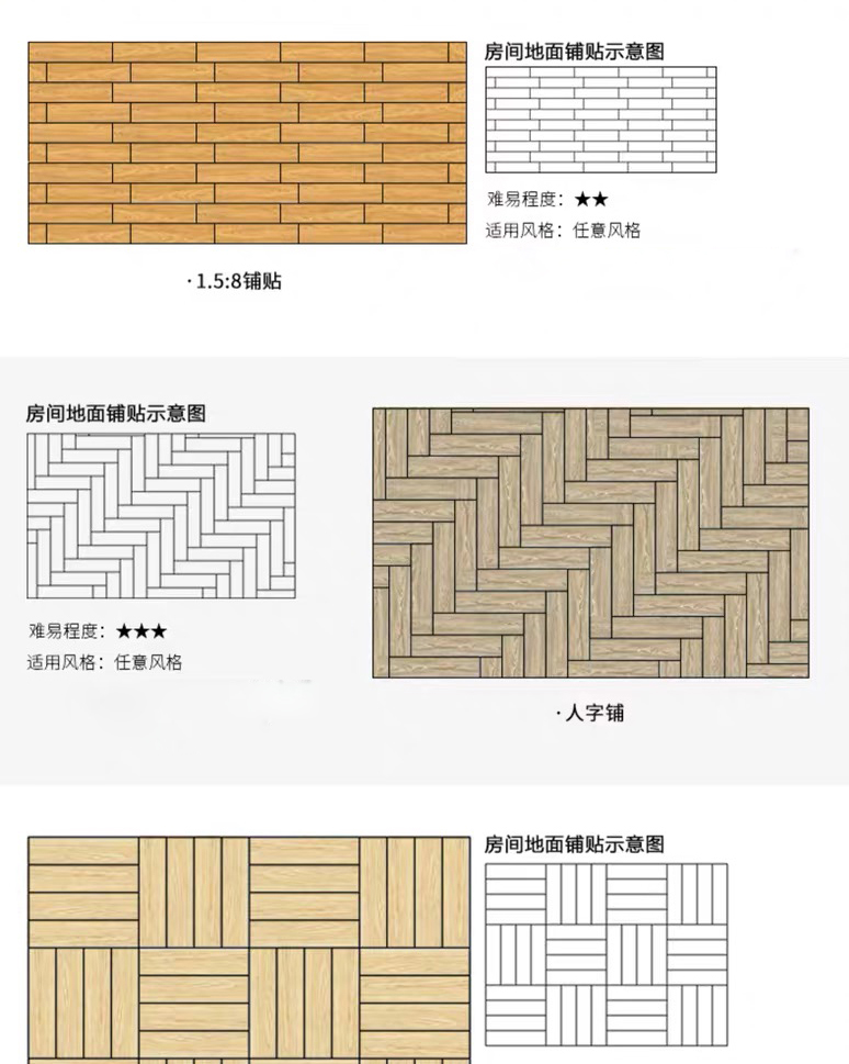 在计算损耗的时候如果正铺一般算5%的损耗,如果是人字铺则浪费多一点约7%。
