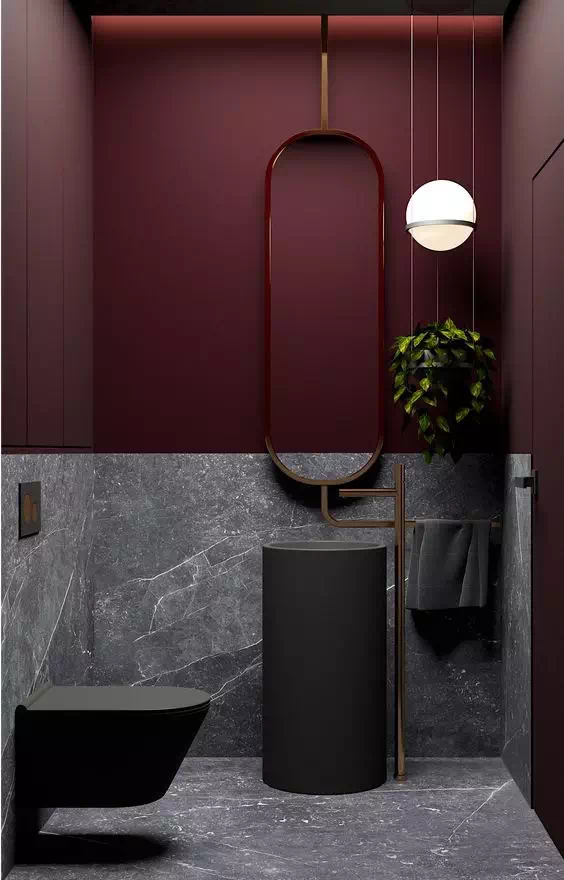 PS:卫生间半墙设计是比较流行的一种款式,下面给你展示几种没用腰线收口的,比有收口的难搞卫生且显得不精致。