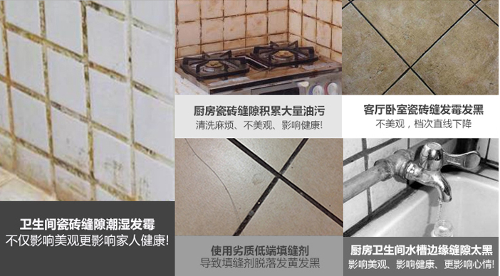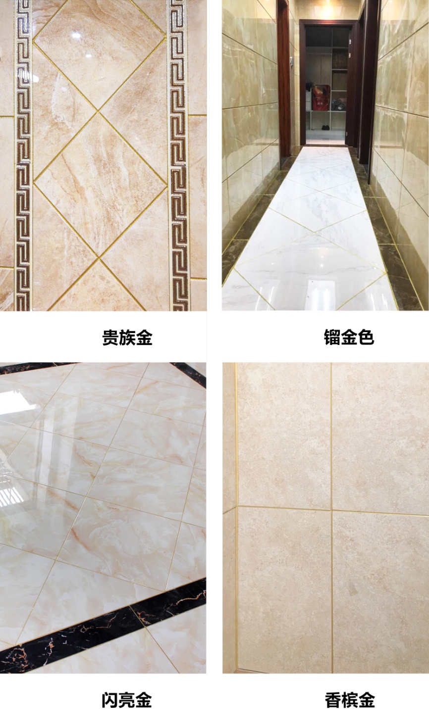 一代美缝剂(早期的单组份美缝剂):水性环氧树脂+固化剂+颜料。耐水防污,硬度高,色彩丰富!固化后容易塌陷,满填费用高!常先用填缝剂做垫层,然后使用美缝剂“罩面”。
