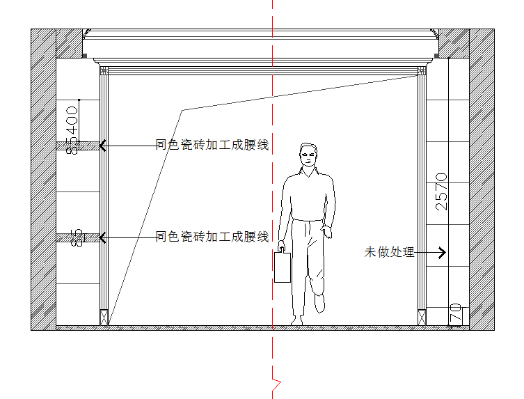 PS:竖腰线在设计的时候要注意宽度、卫浴产品居中才好看的问题。