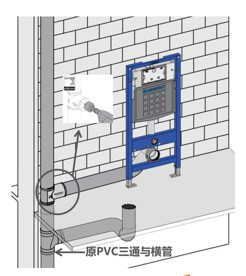 方法四:同上在主力管上新接三通,使用壁挂马桶的形式。