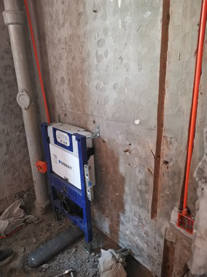补充讲解完壁挂马桶的注意事项后,现在回归到我们隔层排水时马桶移位的介绍。
