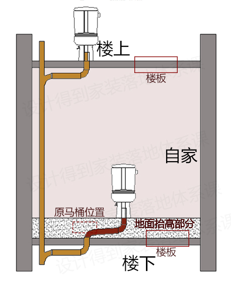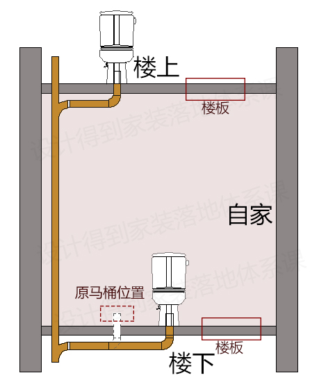 ② 如果马桶需要移位,我们最先一定要知道卫生间的排水结构:同层排水和隔层排水,这两者如果分不清,跟业主现场沟通很容易闹笑话!