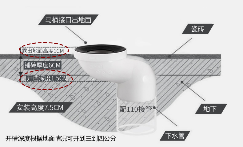 PS:移位器需与瓷砖高度相同,如安装时不需法兰圈,移位器可视情况高于地面瓷砖10㎜-20㎜,但是要注意每个品牌的缸体底座内部厚度各不相同,如果不知道缸底情况,尽量不要露出地面。毕竟,装了法兰圈的马桶才不容易发生漏污现象。