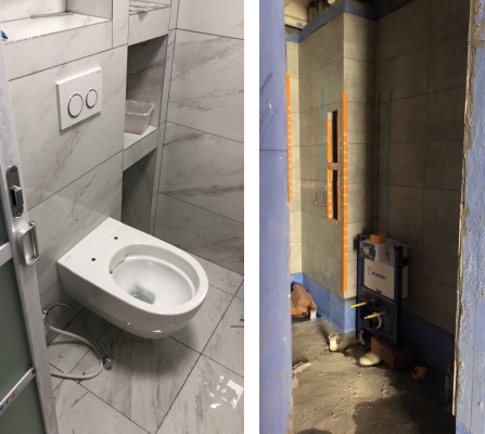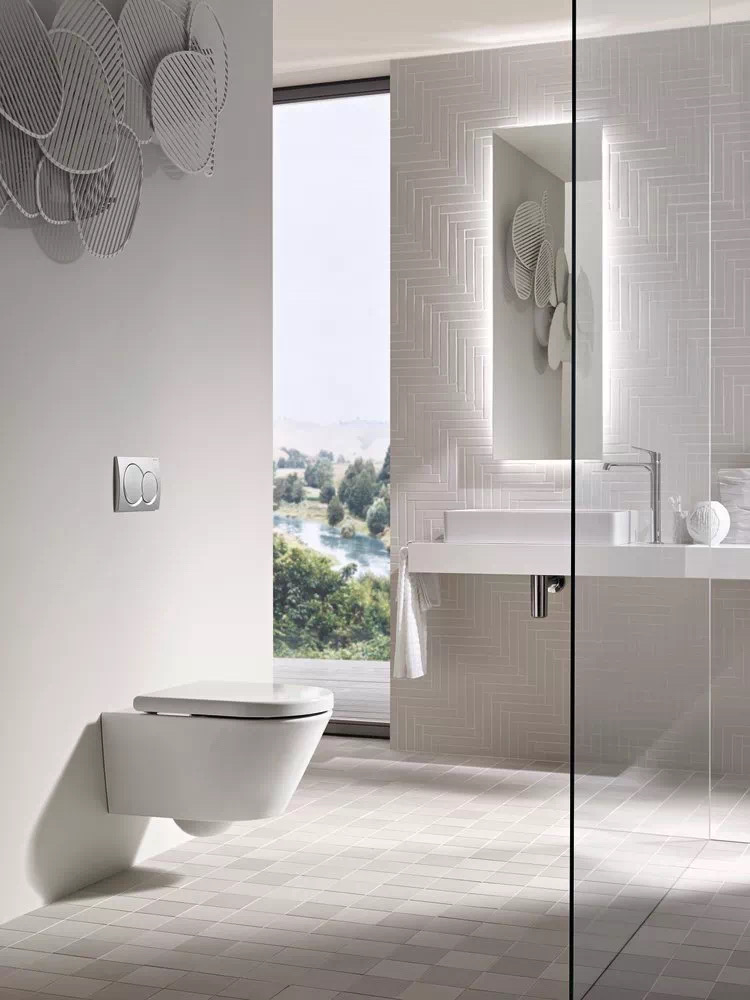 壁挂式马桶可根据设计需求做嵌入式和非嵌入式(即做假墙)安装。