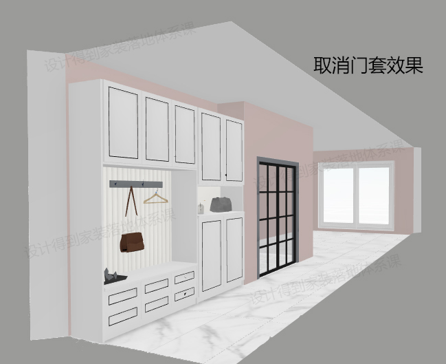 如若此门套上面没有梁位,可直接打到顶更好看。(当然,如果入户实在过长,为了避免视觉空间太过冗长,可视情况保留。)下面我将直观的给你展示。