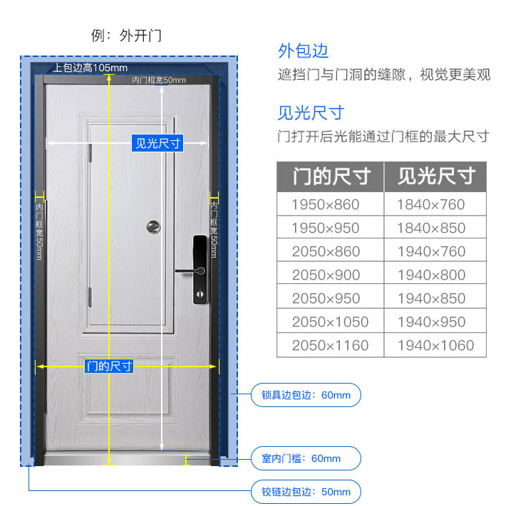 ① 防盗门尺寸。