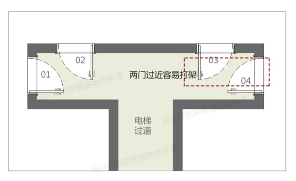 在不少小区,如果开发商设计不合理,很可能会出现两户入门过近的情况,如果在狭窄的过道同时进出,那么很可能出现人挤人使用别扭的情况。这个时候,我们有必要提醒业主这一点。此种情况的解决方案一般是两户一起改内开。