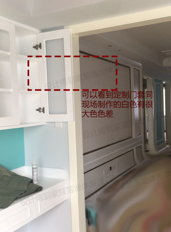②门套常和木门商家一起定制,定制的门套要尽量和现场做的颜色一致,如就算是白色,也有象牙白、珍珠白等之分。在同一个空间内如果相差比较明显影响美观。