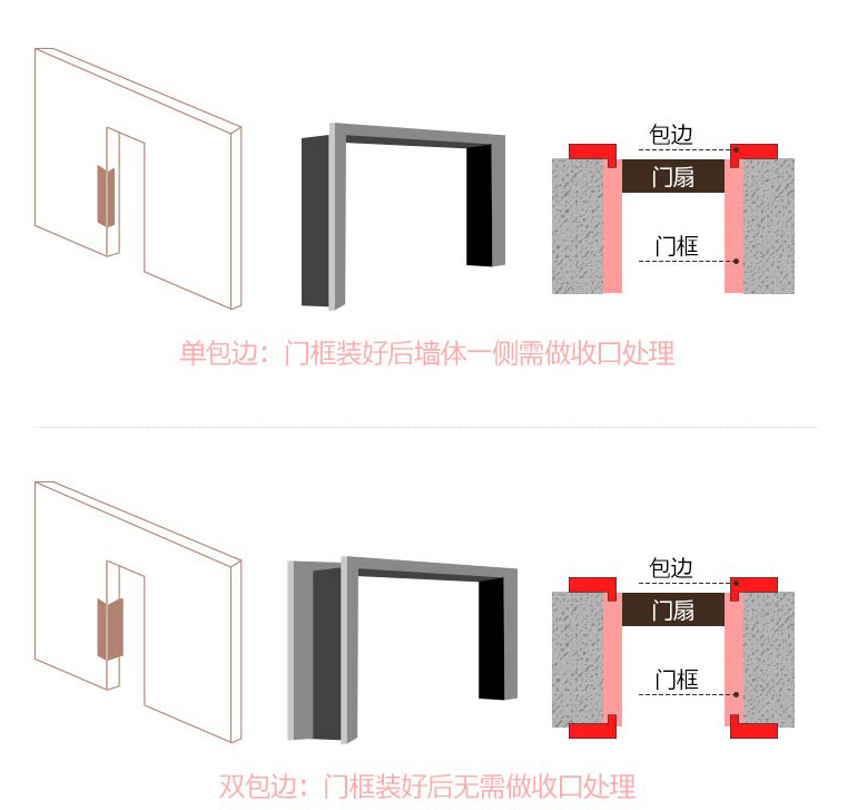 在我们所有的门套当中,入户门是单包的无疑,其他采用单包的地方不多,常在厨卫门套。在瓷砖那块有介绍到半包套,要注意工地交接,以免返工。