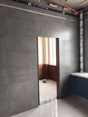在客厅瓷砖上墙的时候,如果想要达到瓷砖上墙的效果,门页上也可以做瓷砖的,因为墙面瓷砖多为点挂,门页上可用瓷砖胶,制作的时候要确保考虑瓷砖厚度进去,完成面做成统一高度。此种建议现场制作,墙砖上墙后再来制作门体。