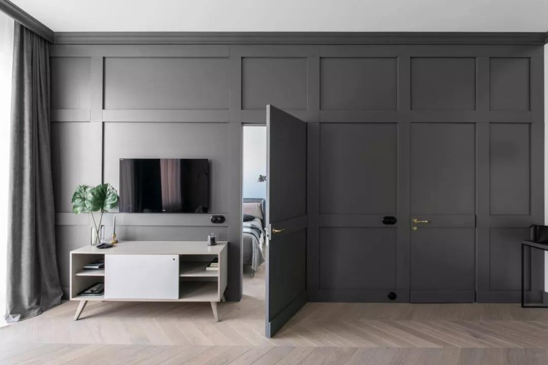 墙门同材质隐形门运用广泛,各种材质可灵活运用:如墙漆、墙布、石材、硬包、木饰面。