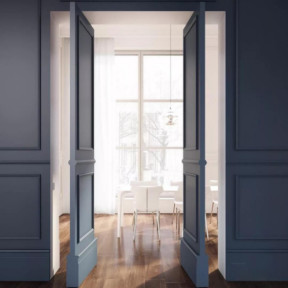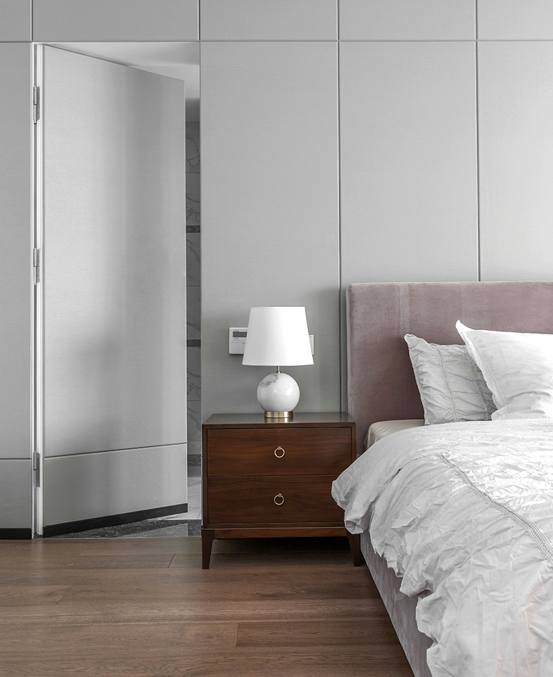 其次如更想达到以假乱真的效果,门上的踢脚线位置也要设计进去,如表面墙漆、墙布饰面的隐形门通常都会另做踢脚线,木饰面的除外。