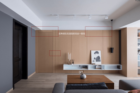 A:造型墙面过短,或者不对称。常见电视背景过短。