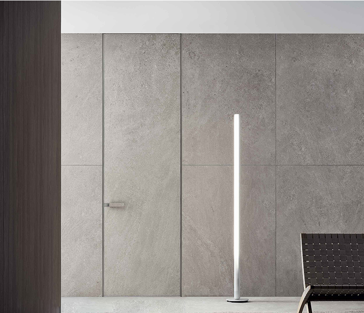 此类隐形门使用较多,能更好的隐藏门洞和提高墙面美感。根据墙面材质的不同而有不同的效果。常有以下几种: