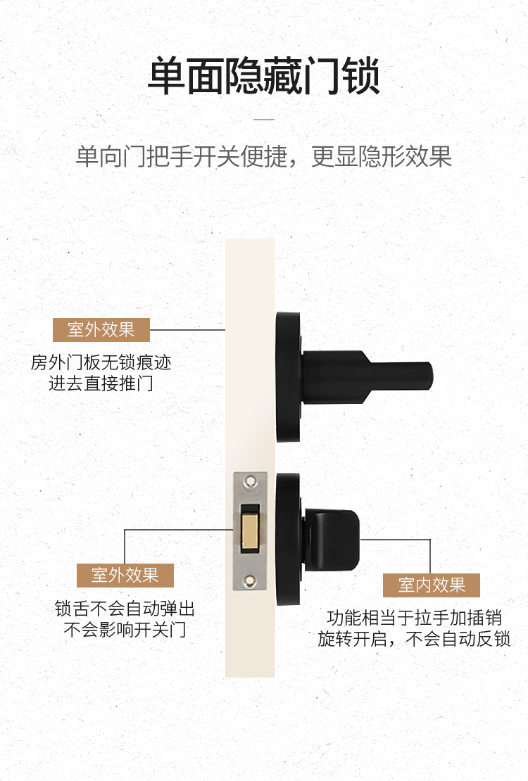 至于门锁,因为要达到外部隐藏的效果,一般采用单面隐藏门锁,如下示意。