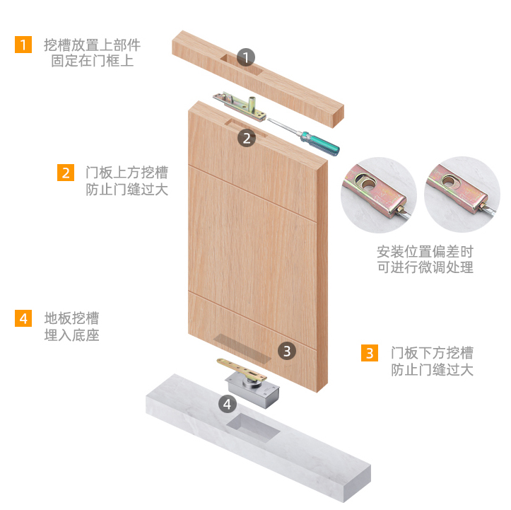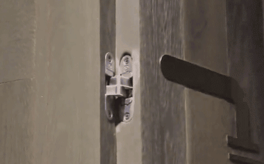 除了以上两种常用的,如果运用到旋转式的隐形门,那么会用到天地轴合页,安装及效果展示如下。