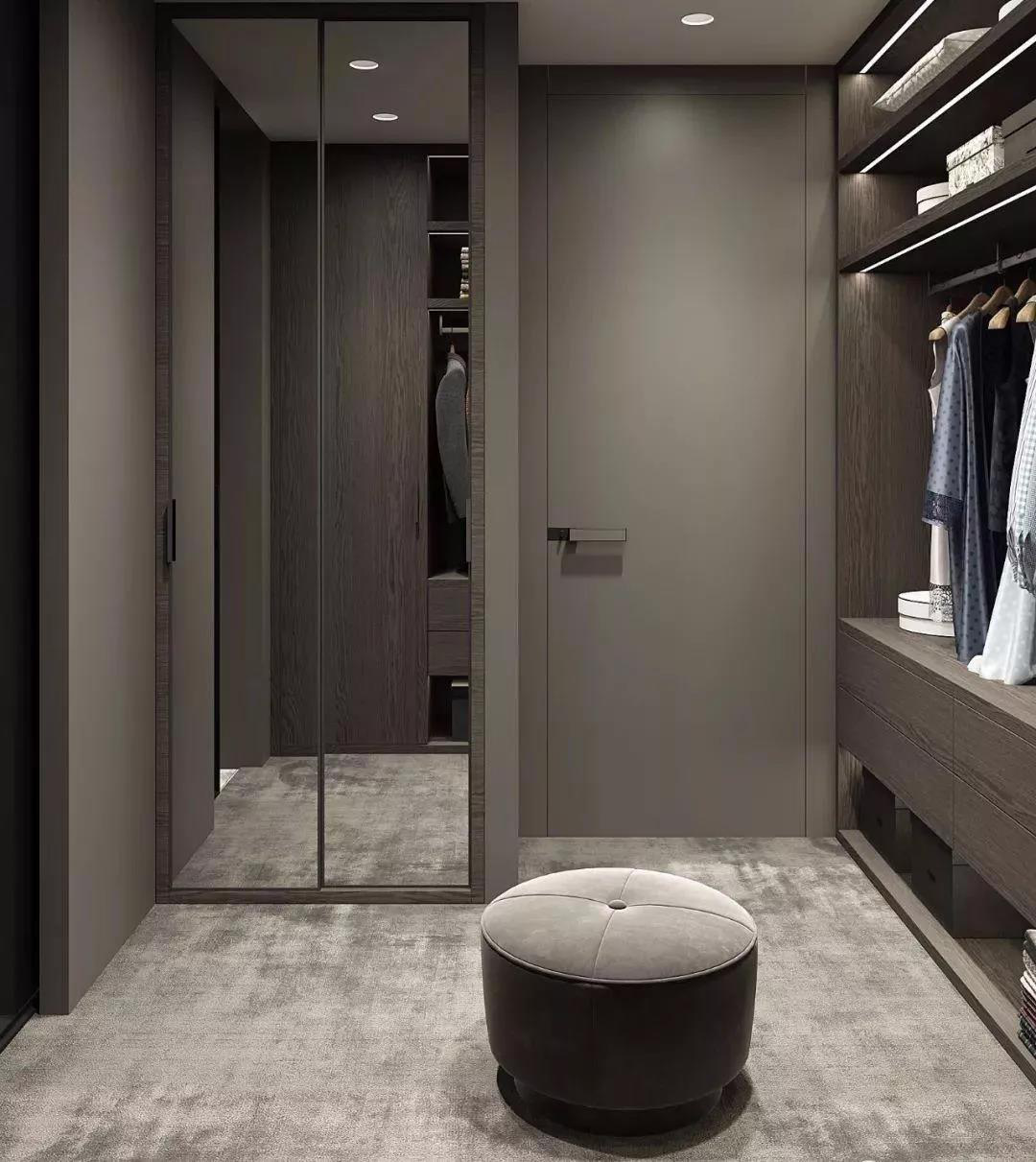 折叠式隐形门:折叠式的隐形门打开之后,只需要占用一边的空间,造价比较高,常见高端整体定制,重点在于五金件。