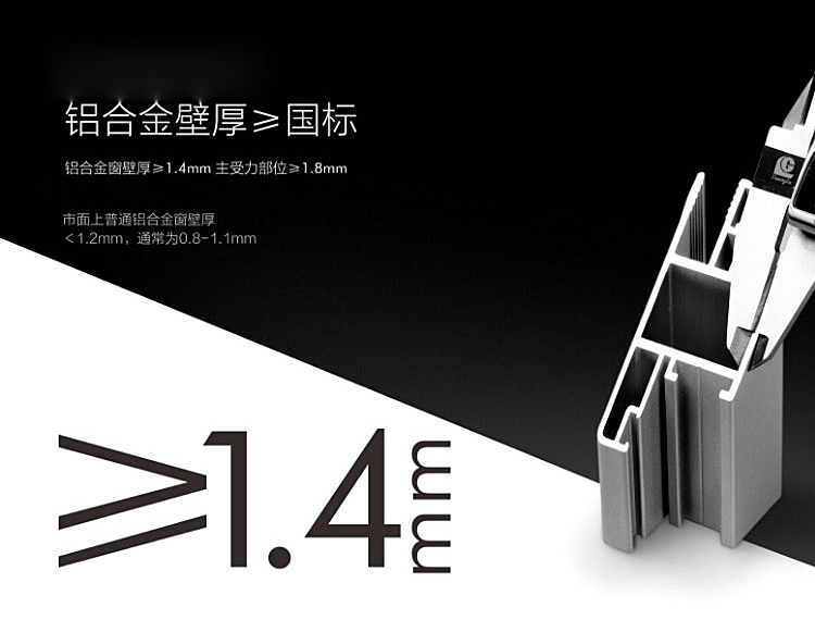 4:壁厚:型材的厚度至少要大于1.4㎜,格越贵的型材厚度越厚,可达到2.0㎜以上的厚度。