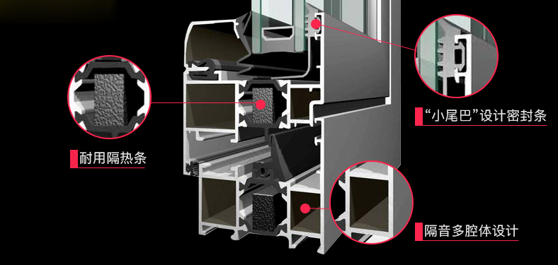 ② 隔热条:部分商家会用PVC隔热条滥竽充数,PVC隔热条耐候性、稳定性差。 PA66(尼龙)材质的隔热条是标配。