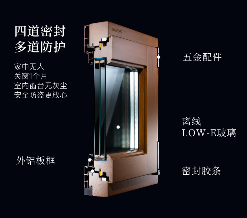 ① 内开内倒的窗户:人不在家时可自然通风,雨水进不了家,春秋夜晚可开着窗睡觉,小偷不易打开。
