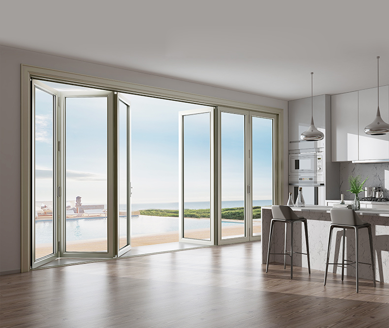 ③ 折叠敞开窗:打开后可全折叠于两侧,在家可享受全通透的阳台景观。出于安全考虑,下部可做固定的,家中无较小小孩才可放心安装。(有部分会在外面装隐形防盗网,反倒失去订购全敞开窗的意义了)