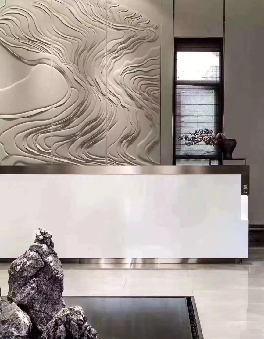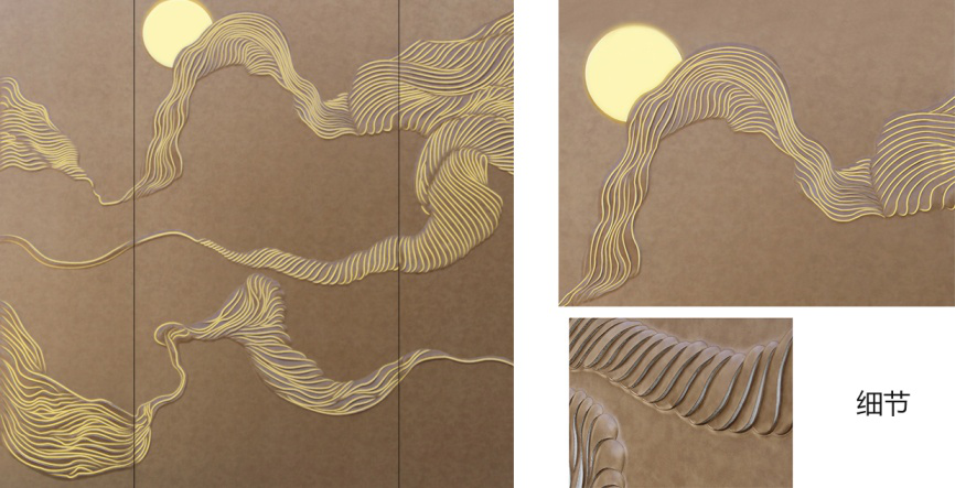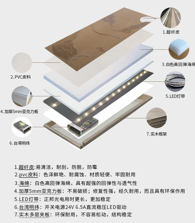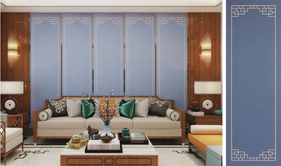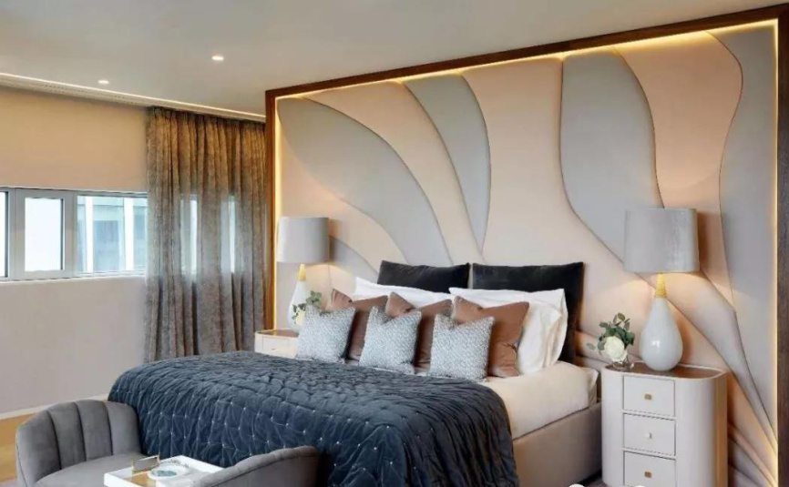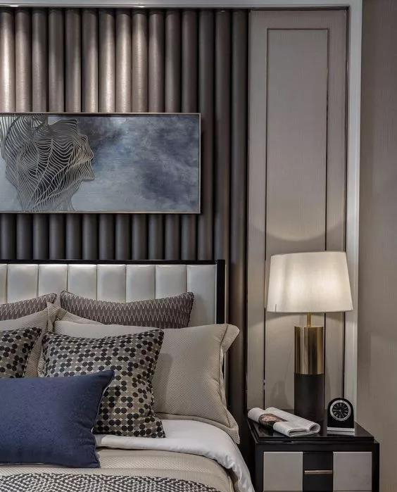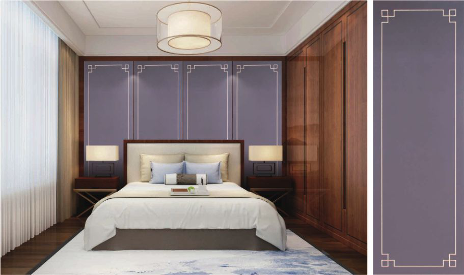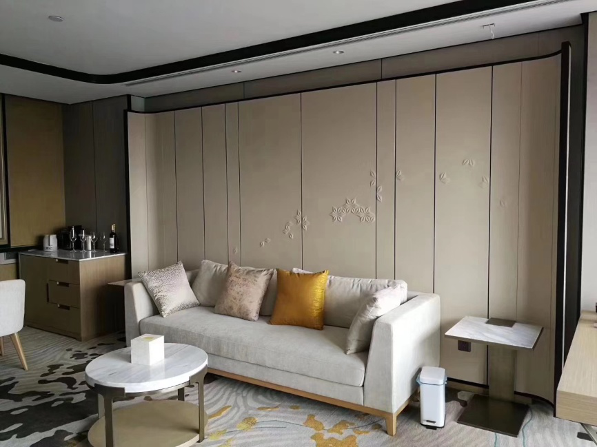 #关键词:#软硬包#个性用材# 通识# 导读 装修中很多业主都喜欢用到软包或硬包,软硬包漂亮美观,艺术性强,且容易打理,是墙布的升级版。 上一期我们学习了墙纸墙布在设计和施工中的注意事项,今天我给你分享的是软硬包的相关知识点,本期主要解决以下知识点: 1:软硬包的组成。 2:软硬包的款式分类。 3:软硬包的设计施工注意事项。 首先给大家介绍第一个知识点。 软硬包组成结构是什么? 软包、硬包是室内空间设计经典元素,常运用在背景造型中,如电视背景、沙发背景、床头背景。 他们的区别从触觉上区分:硬包摸起来较硬,软包摸起来较软。底层和面层是一样的,软包比硬包中间多了一层芯(海绵)而已,他们的结构如下。 硬包:底板+扪面材料 软包:底板+中间层海绵+扪面材料 用以下图示就比较形象了。 如上就是软硬包的区别,软硬包的价格从两百多到一千多的都有,价格悬殊取决于各组成部分的材质和做工。下面我将分开给你讲解。 软硬包的基层: 软硬包的基层底板大部分是12㎜厚,不少商家采用的是密度板。如果想要更好一点的材质,通常需要加价升级。无论使用如下哪一种,一定要注意环保级别是否达到。下面我将常见底板给你做好整理。 ① 中纤板:高密度密度板的一种。有6㎜、9㎜、12㎜。一般做软包用9㎜,做硬包是12㎜。(6㎜一般发生在客户边框做低了的时候才会用到) ② PVC雪弗板:有9㎜、12㎜两种,因为硬度较高,常用于生产皮雕软包。 ③ 多层实木板:多层板一般是客户升级产品,常用于生产浮雕产品。 ④ 吸音板(聚酯纤维板):吸音板属于特定材料,一般用于降音降噪的地方,他的最大特点就是吸音。同样有9㎜、12㎜两种,价格比上三种高。 软包的海绵层: 海绵:市场上很多软包使用的是回收材料制作的海绵,弹性差,颜色发黄发灰,选择高弹海绵,软包塑形丰满,不变形。 软硬包的表层: 软硬包的扪面材料主要有两大类:布艺和皮革。 布艺的话不用多说,常见绒布、棉麻,甚至我们上期讲过的墙布材质都可做成软硬包的材质。 至于皮革,常见四种如下。 ① 真皮:由黄牛皮直接加工而成,表面有原始的皮肤特征,毛孔、皮肤纹理清晰,具有良好的强度、弹性,光泽手感度一流。 ② 超纤皮:汽车座椅采用皮,超细纤维制造而成,耐磨耐刮,质量仅次于真皮,但价格却比真皮优惠,性价比较高的一种皮料,保用十年以上,是最接近真皮的一种。 ③环保PU皮:(又称西皮)手感柔软,更接近皮质面料,它不用增塑剂来达到柔软的性质,所以他不会变硬、变脆,同时具有色彩丰富、花纹繁多的优点,价格又比皮质面料便宜,是大部分软硬包厂家选用的皮料。 ④ PVC人造革:他是由PVC加增塑剂和其他的助剂制成,优点是价格便宜、色彩丰富、花纹繁多,缺点是轻易变硬、变脆。 软硬包的款式分类 款式问题:硬包的款式很多种。如果按面料表面处理来分,常分为常规、刺绣、印花、车线、拉扣、铆钉、铆钉、浮雕软硬包,下面我将一一给你展示。 普通软硬包:常规布料上不做任何处理的软硬包,价格最低。 车线硬包:在硬包表面车线,常见皮革类硬包表面的处理。 格调车线硬包细节图↑ 铆钉硬包:在硬包表面钉铆钉,需要注意铆钉材质,铆钉不要容易生锈和褪色的材质。 拉扣软包:拉扣有皮质的也有水晶材质的,常按粒计价。拉扣可居硬包块中,或硬包拼接处,常用于床头背景。 刺绣/印花硬包:高端的刺绣硬包价格昂贵,比较彰显品位,常用于电视/沙发背景。 格调刺绣硬包细节图↑ 浮雕软硬包:种类比较多,分割花、不割花、双色、透光等等。但无论是那种浮雕软包,都有其自己独特的特点。此类价格较贵,常用于别墅豪宅样板房项目中。 格调浮雕硬包细节图↑ 高端浮雕硬包↑ 如果是发光浮雕硬包,那么在施工初期我们就要预留好电线。 福布斯高端灯光浮雕↑ 学习完软硬包的基本产品知识,在陪同客户选购的时候,对于产品的好坏我们至少能帮业主参考啦。接下来我们进入第三个知识点的学习。 软硬包的设计施工注意事项。 软硬包运用广泛,在设计和施工中常需要注意以下几个问题。 1:软硬包的排版设计样式问题。 2:软硬包安装工艺讲解。 3:软硬包的其他施工细节。 下面我将一一给你讲解。 软硬包的排版设计问题。 软硬包的排版设计重点在于我们要多了解一些硬包的拼接款式,不要局限于简单的竖线款式。下面我将整理一些软硬包的款式供你排版设计参考。 第一类:常规线条分割款式。 第二类:异形。 软硬包的安装工艺: 软硬包的安装有两种方式,一种是现场制作,一种是成品定制,两种方法都需要木饰面打底,如遇造型,下方还可加轻钢龙骨。 现场制作流程大致如下: ① 木饰面打底。 ② 放线:在铺有底板的墙面上根据设计要求放线绘制图案。 ③ 钉型条:将型条按墙面划线铺钉。 ④填充海绵:如果是薄的海绵效果接近硬包。 ⑤ 插入面料:用插刀将面料插入型条缝隙。 ⑥型条收边 成品定制软硬包流程只有两步:先是木饰面打底,然后安装即可。成品硬包是一块一块的,安装主要有如下三种方法。 ① 枪钉:用气钉枪在软硬包的四个角和边缘打上汽钉固定即可。 ②用免钉胶直接粘贴,双面胶辅助,步骤如下,适合小块软硬包的安装,不建议如下直接在墙壁上粘贴,还是木饰面打底就为稳妥。 ③魔术贴:将魔术贴的勾面和毛面分别固定贴于打底面和软硬包背面,粘上即可,方便更换。