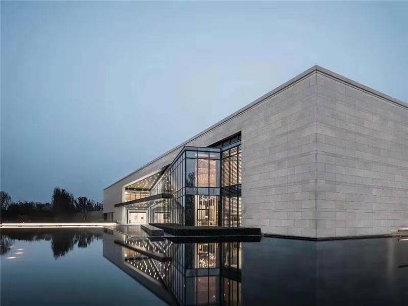没有什么石材能比砚墨石更能吻合这座建筑的气质了,朝歌的石头、伏羲的古木、中式水墨、就地取材。砚墨石承载着流淌的诗经,浸入山水画卷之间,就像水和岸一样。