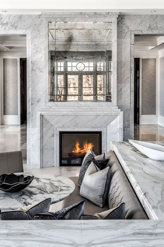 性派的大理石壁炉使用在私人住宅中,这种设计都是为了体现大理石所带来的恢弘之感,美妙和个性的形式配上大理石的花纹,让空间变得非常有创意和艺术感。
