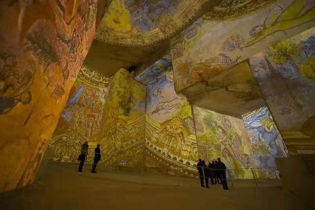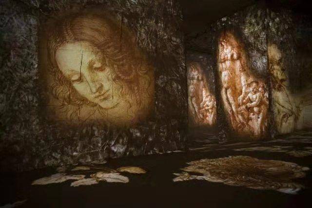 感谢艺术家们的创作,这个光影采石场如今是一个超过6000平方米的巨大画廊。70台投影机将世界名画铺满14米的巨大石墙、石柱和地板上。石洞内天然的环绕立体声效果,提供独一无二的机会,让观者身心沉浸在杰出的艺术世界中。