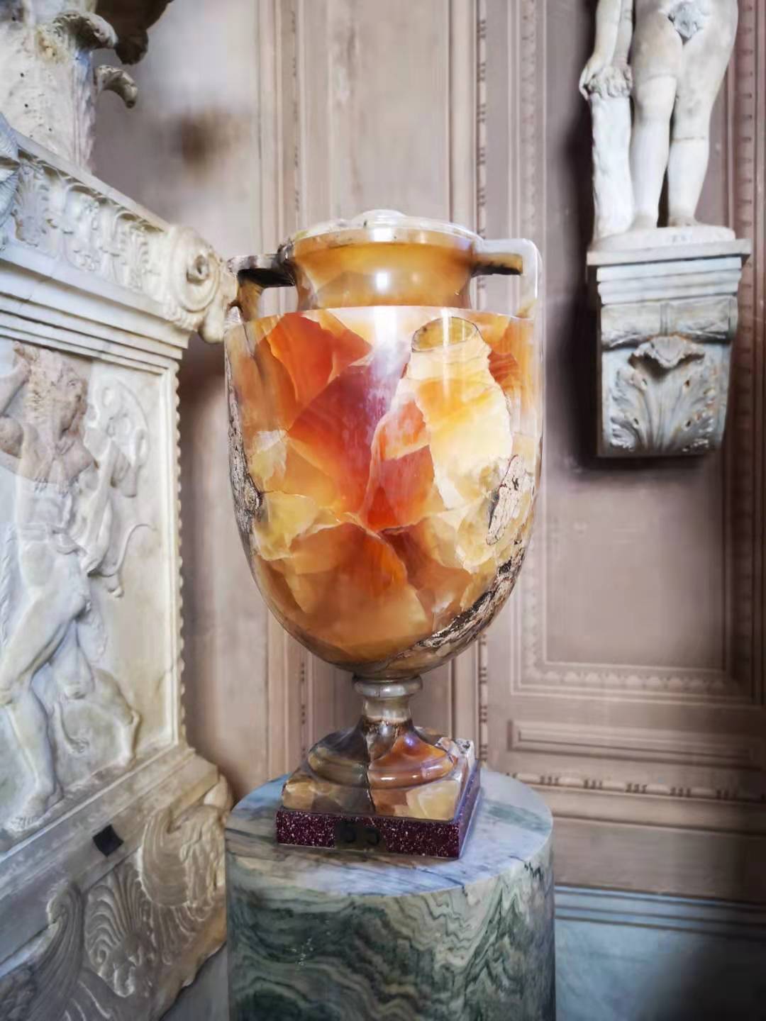 金碧辉煌的走廊顶以及石瓶