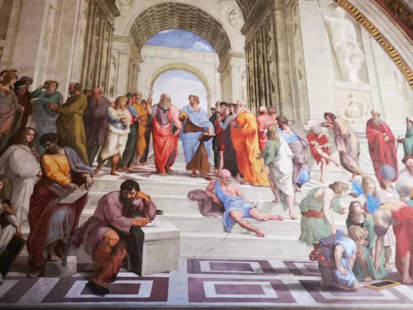 博物馆中拉斐尔的真迹《雅典学院》
