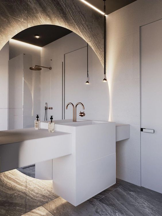 2、空间足够时,可以把墙做出来一段,整体外包,不仅美观上方搭建起来的空间也可做嵌入式镜柜等;