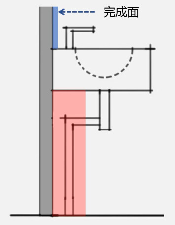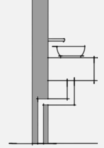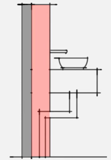 台盆后方砌一堵假墙,形成一定的宽度的布置管道的专用空间,排水支管不穿越楼板在假墙内敷设、安装,在同一楼层内与主管相连接。