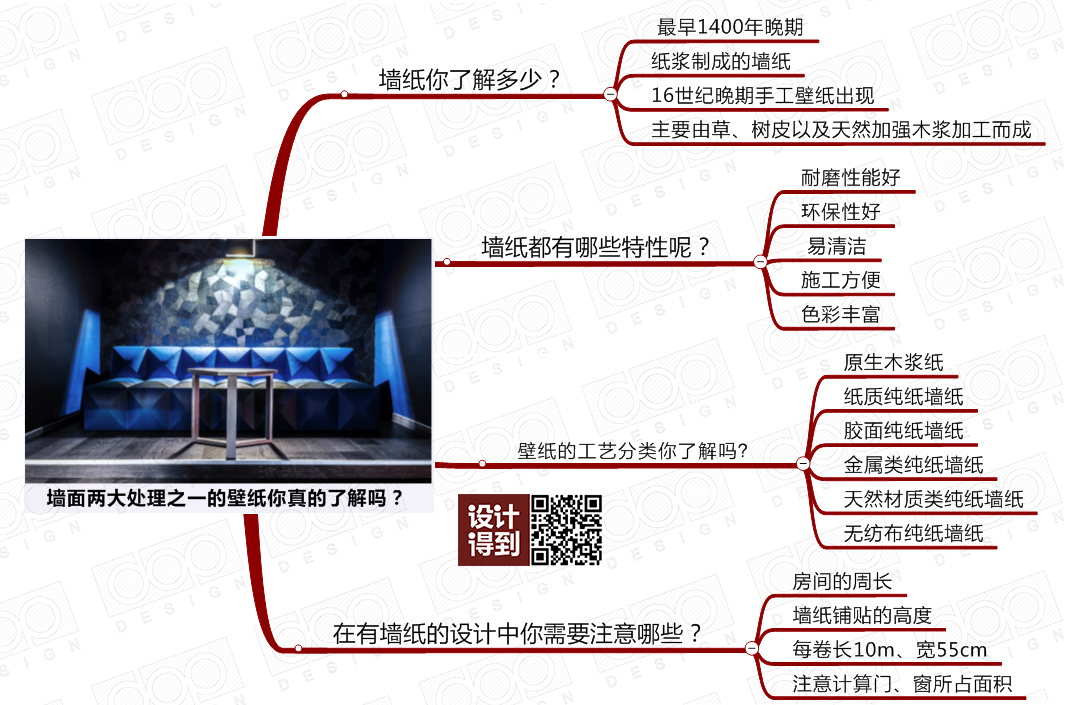该板块主要包括墙纸的材料介绍、材料属性、材料分类、施工工艺与案例鉴赏,希望通过这些内容能让你对墙纸有系统性的认识,并灵活运用在工作中去。