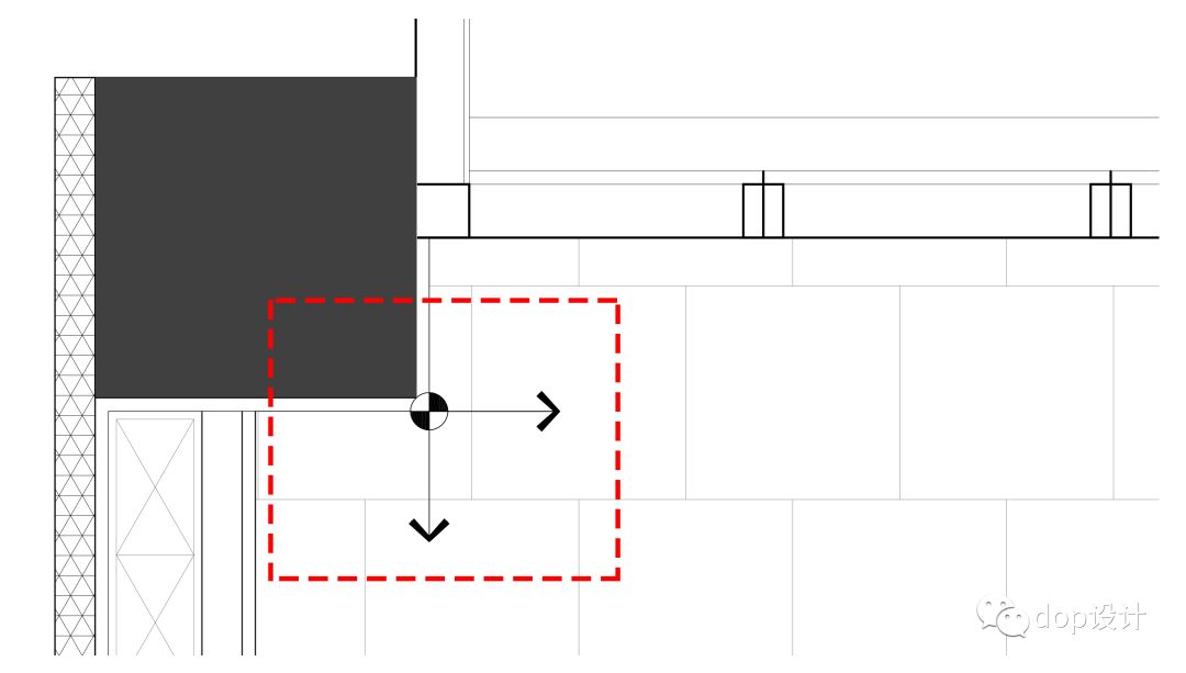 上图中的起铺点是放在柱子的阳角部位,当然也可以置于墙体阴角,或者特定的轴网坐标。首先解释一下为什么会有起铺点?在地坪布置图中设置起铺点更多的是起到强化设计关系,并指导施工的目的。