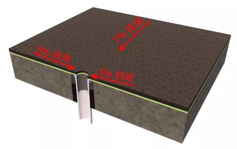 找坡层向地漏找坡,坡度应为1%(同一干湿区可直接按10mm找坡),地漏周边半径50mm范围内,坡度应提高为5%(碗口状)。
