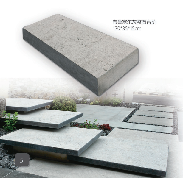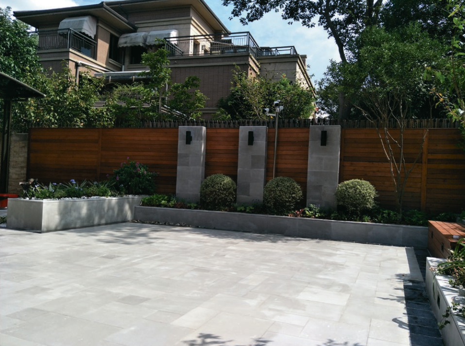 材质没有花岗岩的麻点多,色泽均匀,易于加工,可通过不同的加工工艺,表现颜色的质感,是现代庭园值得推崇的一款铺材。
