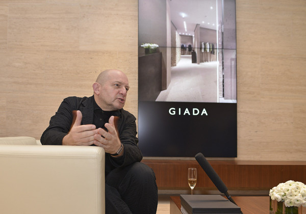 他擅长使用天然的石灰石、青铜、流水及皮革来衬托GIADA 成衣的顶级天然面料与极简风格。